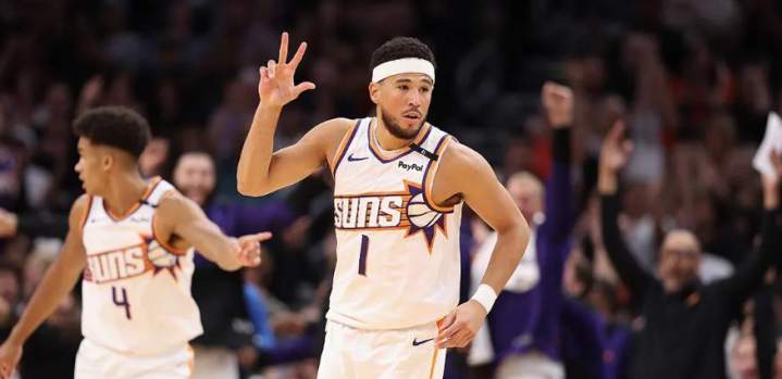 双方首发阵容:太阳队大将杰伦格林因伤缺阵,排出了布克、狄龙布鲁克斯、阿伦、邓恩、伊戈达罗的阵容;掘金队排出了约基奇、穆雷、戈登、布劳恩、约翰逊的组合!